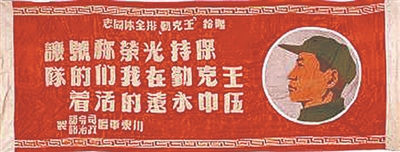 这是一面用红色锦缎制成的精美锦旗,上书“赠给‘王克勤’排全体同志,保持光荣称号,让王克勤在我们的队伍中永远的活着。川东军区司令部政治部制”,锦旗右侧镶有彩锦制作的王克勤头像。如今,这面锦旗陈列在中国人民革命军事博物馆里,默默地向人们讲述着王克勤由一名解放战士,成长为我军杀敌英雄、爱兵模范的动人故事。