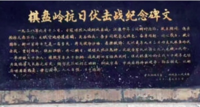 ▲刻于纪念亭后方的棋盘岭抗日伏击战纪念碑文。