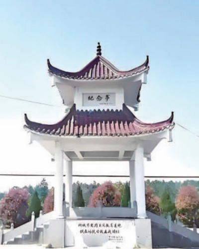 ▲棋盘岭抗日伏击战纪念亭。