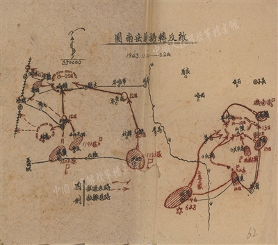 ▲解放军档案馆馆藏档案1943年《敌反转扫荡岳南图》。