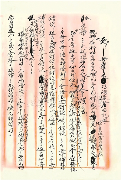 ▲1935年,方志敏同志在狱中作《死!——共产主义的殉道者的记述》(部分)。 中央档案馆藏