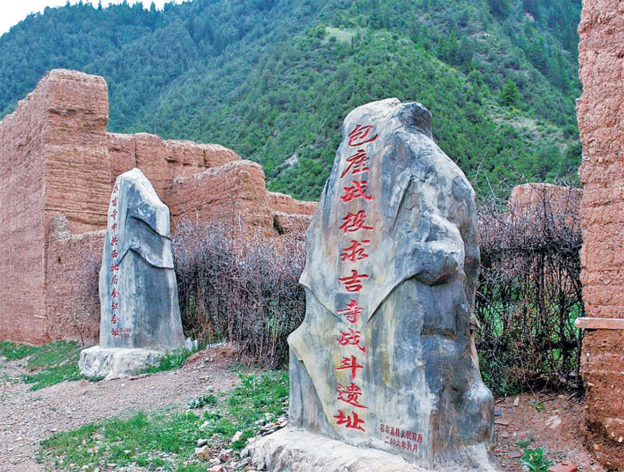 从四川省若尔盖县出发,沿蜿蜒山路行驶约40分钟,一处残垣断壁映入眼帘。厚达1米多、高达5米多的黄土围成的四面墙,依稀勾勒出房屋轮廓。土墙前矗立的纪念碑上,镌刻着“包座战役求吉寺战斗遗址”字样。