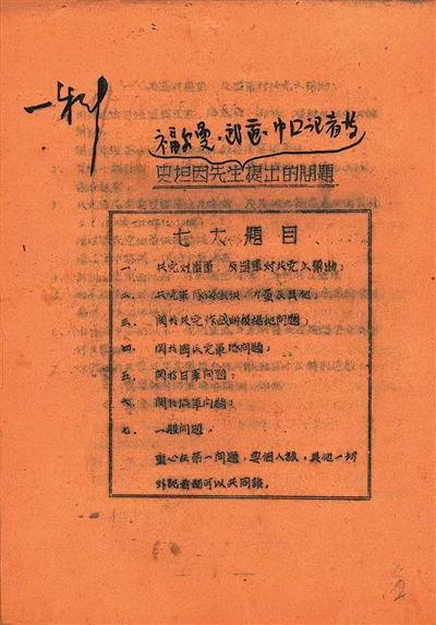 ▲中外记者西北参观团在延安采访时提出的7个问题。