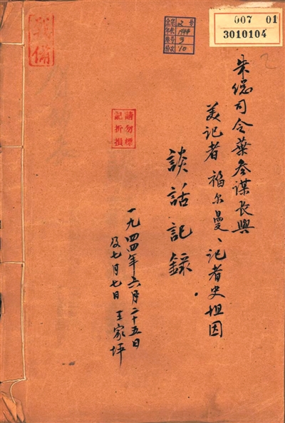 解放军档案馆保存着一份关于中外记者西北参观团的珍贵档案,标题是《史坦因、福尔曼、武道及中国记者等提出的问题》,详细记录了记者们对中国共产党提出的7个问题:“共党对盟军及盟军对共党之帮助”“共党军队的组织、力量及其他”“关于共党作战的根据地问题”“关于国民党军队问题”“关于日军问题”“关于伪军问题”“一般问题”。