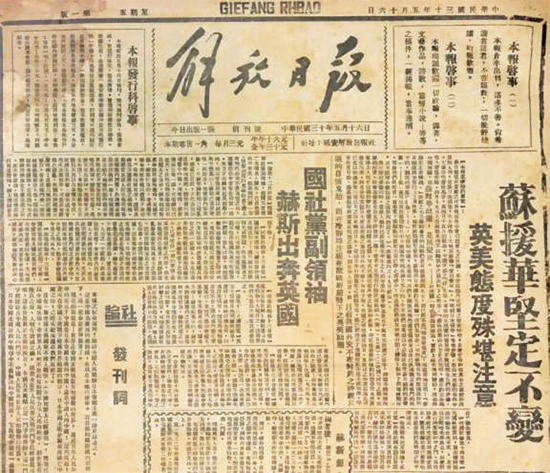 ▲延安《解放日报》创刊号。 资料照片