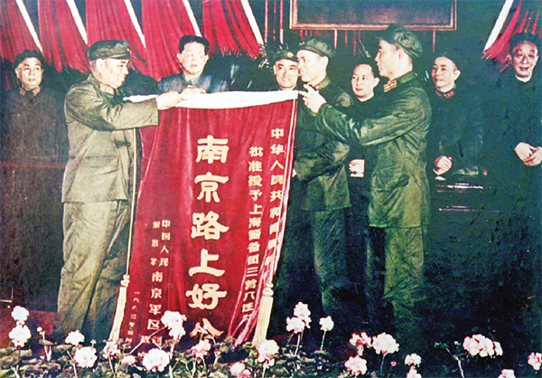 ▲许世友上将向“南京路上好八连”授旗。