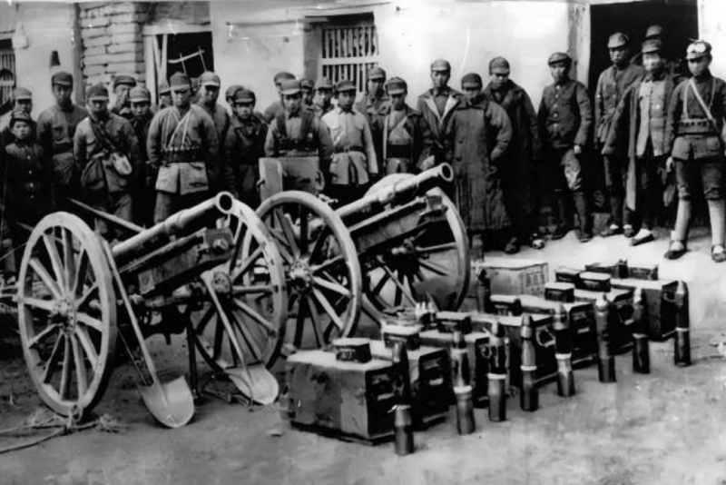 ▲1939年2月,八路军129师386旅在香城固战斗中缴获的日军装备。