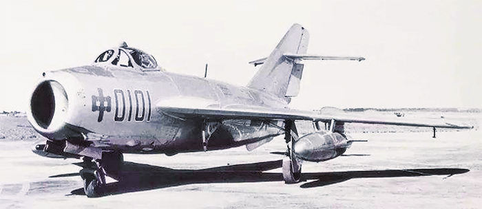 ▲编号为“中0101”的第一架国产歼-5战斗机。
