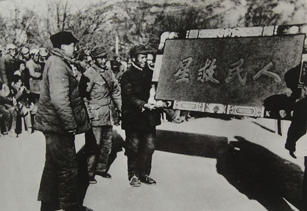 ▲1946年春节,延安人民向毛主席、朱总司令献匾。