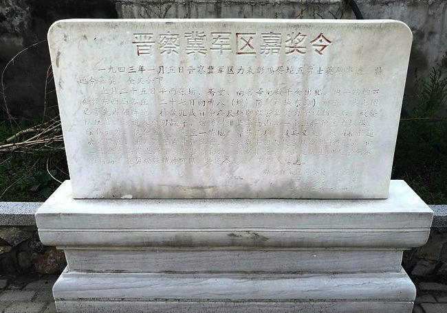 烈士陵园内的晋察冀军区嘉奖令碑刻