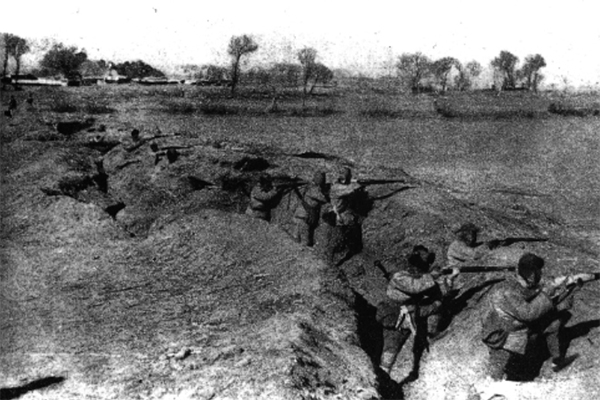 ▲安德馨所率六二六团第一营在山海关阵地上抵抗日军进攻。