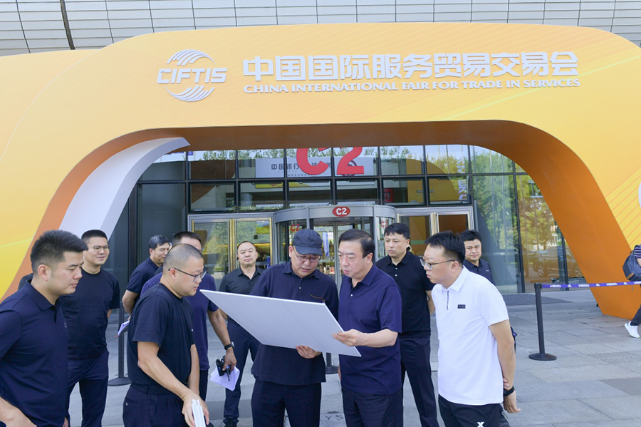 ▲2023年8月28日,董亦军同志(前右二)在中国国际服务贸易交易会举办地,对交通服务保障工作进行现场踏勘。 新华社发