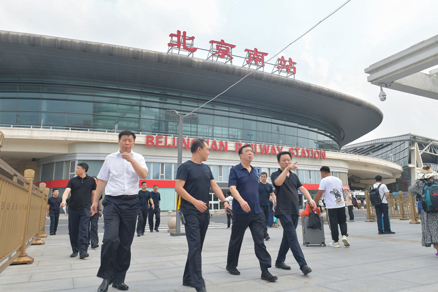 ▲2023年7月26日,董亦军同志(前左三)在北京南站进行实地踏勘调研。 新华社发
