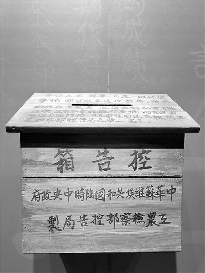 ▲中华苏维埃共和国临时中央政府工农检查部设立的控告箱。 江西瑞金干部学院供图