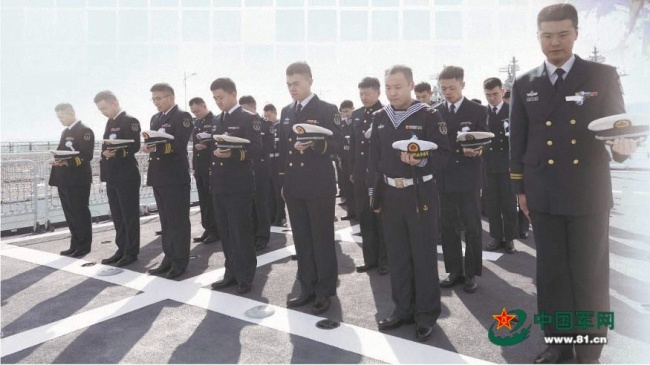 ▲1月30日,海军定州舰为金城龙举行悼念活动。