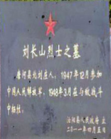 刘长山,生于1919年,河南省南阳市唐河县北刘庄人。1947年12月参加中国人民解放军,1948年3月在与敌战斗中牺牲。现安葬于驻马店泌阳县烈士陵园。