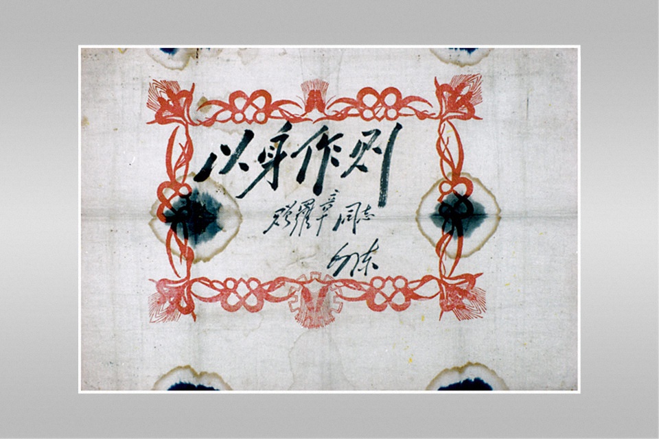 1942年10月,在延安西北局高级干部会议上,罗章因在南泥湾大生产运动中表现突出被评为边区22位劳模之一。毛泽东同志在漂白布奖状上题写“以身作则”四字赠予罗章,表彰他的模范带头作用。