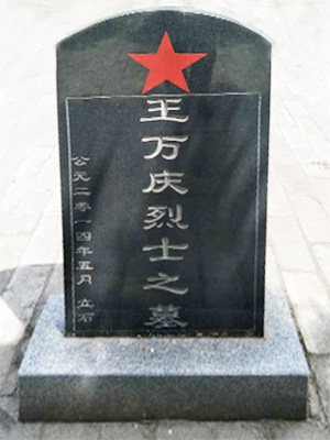 王万庆,四川省福洲大阳乡人,中共党员。1922年出生于一个穷苦的农民家庭,自十几岁起就给财主家干活。1947年参加了人民解放军,历任战士、班长、排长、副连长等职务。1948年11月攻打永丰时,他在十二团三营九连任代理连长。战地动员时,他向全连战士说:“我们这次一定要干净、彻底地歼灭固守永丰的敌七十六军,绝不让敌人跑掉一个……”战士们在他的带动下,士气高涨。战斗总攻开始,王万庆首先带领突击队登上城墙,后续部队相继而上,以密集的火力射向敌人。激战中,他头部中弹光荣牺牲,时年27岁。