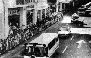 ▲叶剑英灵车经过广州大街,广州人民夹道表示哀思。