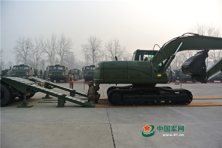 连接重装备运输车与大型工程机械车。中国军网记者李景璇 摄