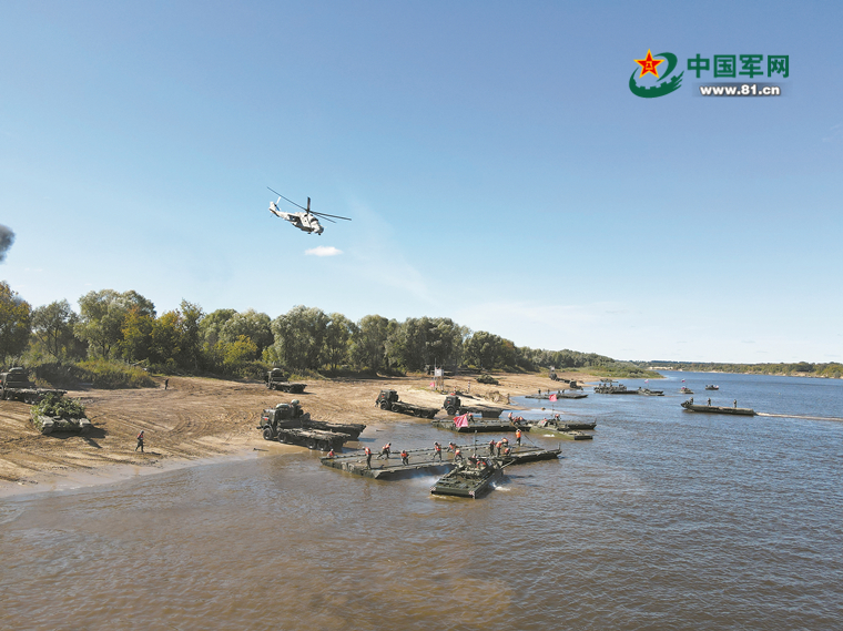 此次比赛依托俄军奥卡河舟桥训练基地组织,中俄双方的陆上机动赛道、水上航渡赛道均采用“原貌化”的天然地形和条件,陆上机动、水上渡送等环节需临机处置各种突发情况,实战氛围浓厚。我参赛队员积极发扬优良作风,在装备不够熟悉、场地较为陌生等困难条件下,与俄方展开激烈对抗,最终取得工兵班工程侦察、自行舟桥渡送车辆和坦克2个单项第一,总评第二的好成绩。