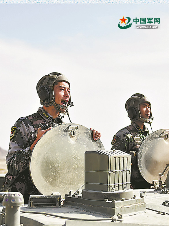 “魏成科英雄连”连长敬建宁(左)指挥战斗。詹奕坤摄