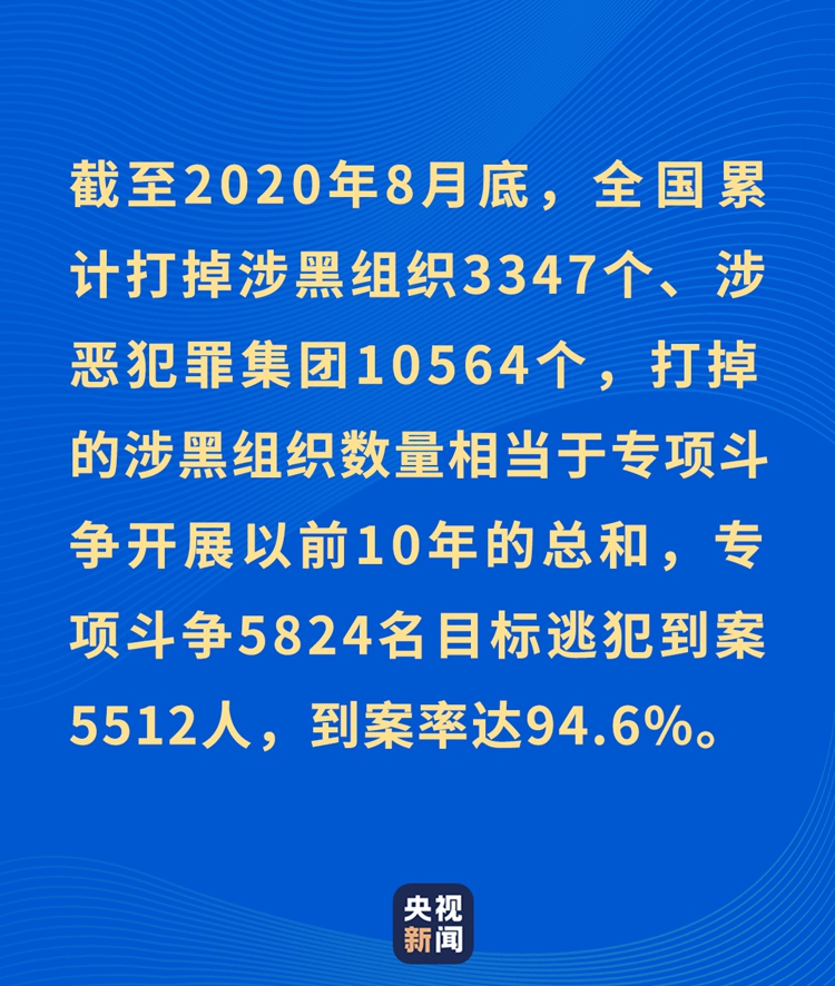 2020年11月16日至17日召开的中央全面依法治国工作会议上,习近平总书记指出,要推动扫黑除恶常态化,坚决打击黑恶势力及其“保护伞”,让城乡更安宁、群众更安乐。