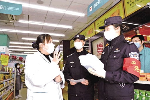 ▲ 2020年3月2日,江苏省无锡市公安局梁溪分局民警到小区、超市、酒店、药店等重点区域进行检查指导,落实精准防控,排查风险隐患。