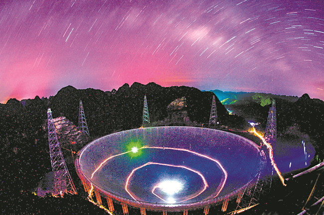 射电天文学领域起步晚于世界近30年的中国,在贵州省平塘县建成了世界上最灵敏、口径(500米)最大的球面射电天文望远镜(英文简写“FAST”),被人誉为“中国天眼”。