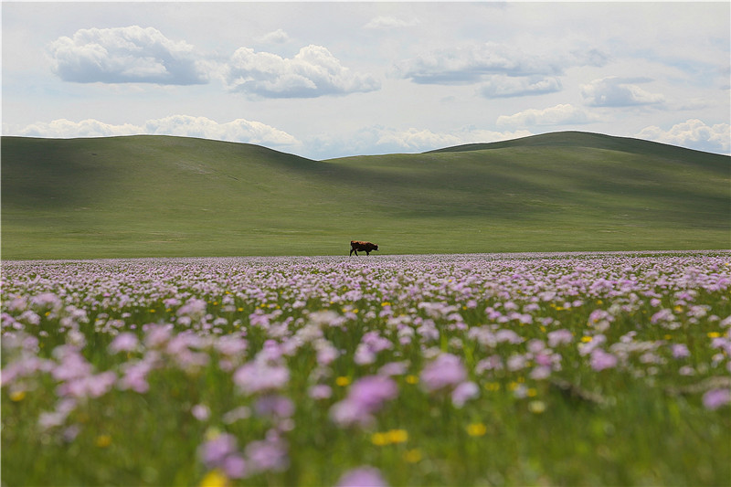 这是在扎鲁特旗拍摄的草原花海(2020年6月5日摄)。进入夏季,内蒙古自治区通辽市扎鲁特旗北部山地草原生机勃勃。