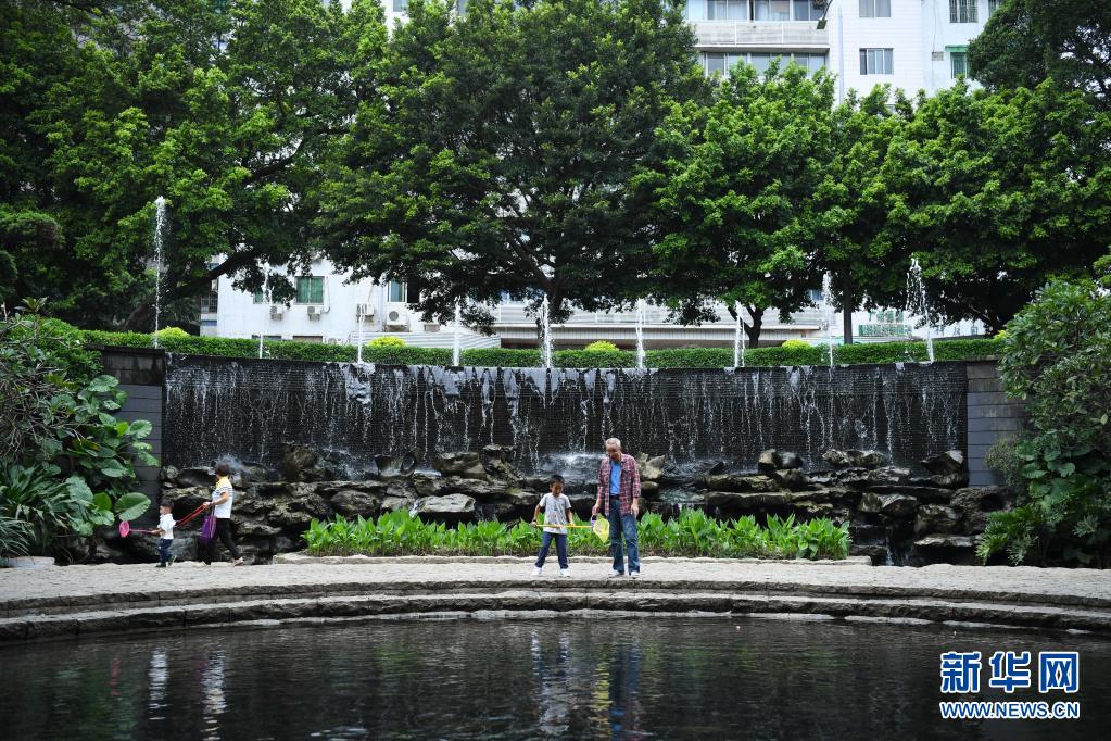 市民在广州东濠涌城市绿带游玩(2018年10月14日摄)。新华社记者 邓华 摄