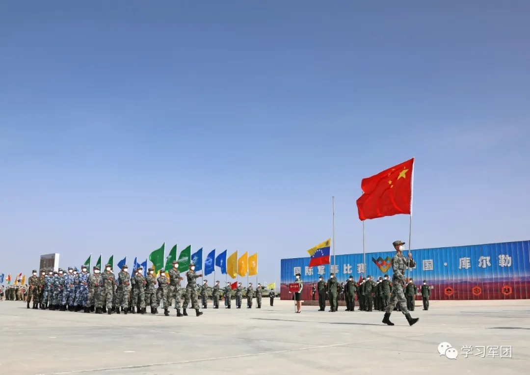 七国健儿齐聚丝路梨城,拼搏奋进筑就铁血荣光。8月22日上午,“国际军事比赛-2021”中国库尔勒赛区开幕式在“苏沃洛夫突击”比赛场举行,中央军委训练管理部领导专门率工作组现场指导,中外嘉宾、裁判员、参赛队员、官兵代表参加,开幕式安排了入场式、升旗仪式等内容,仪式结束后还进行了军事课目演示。