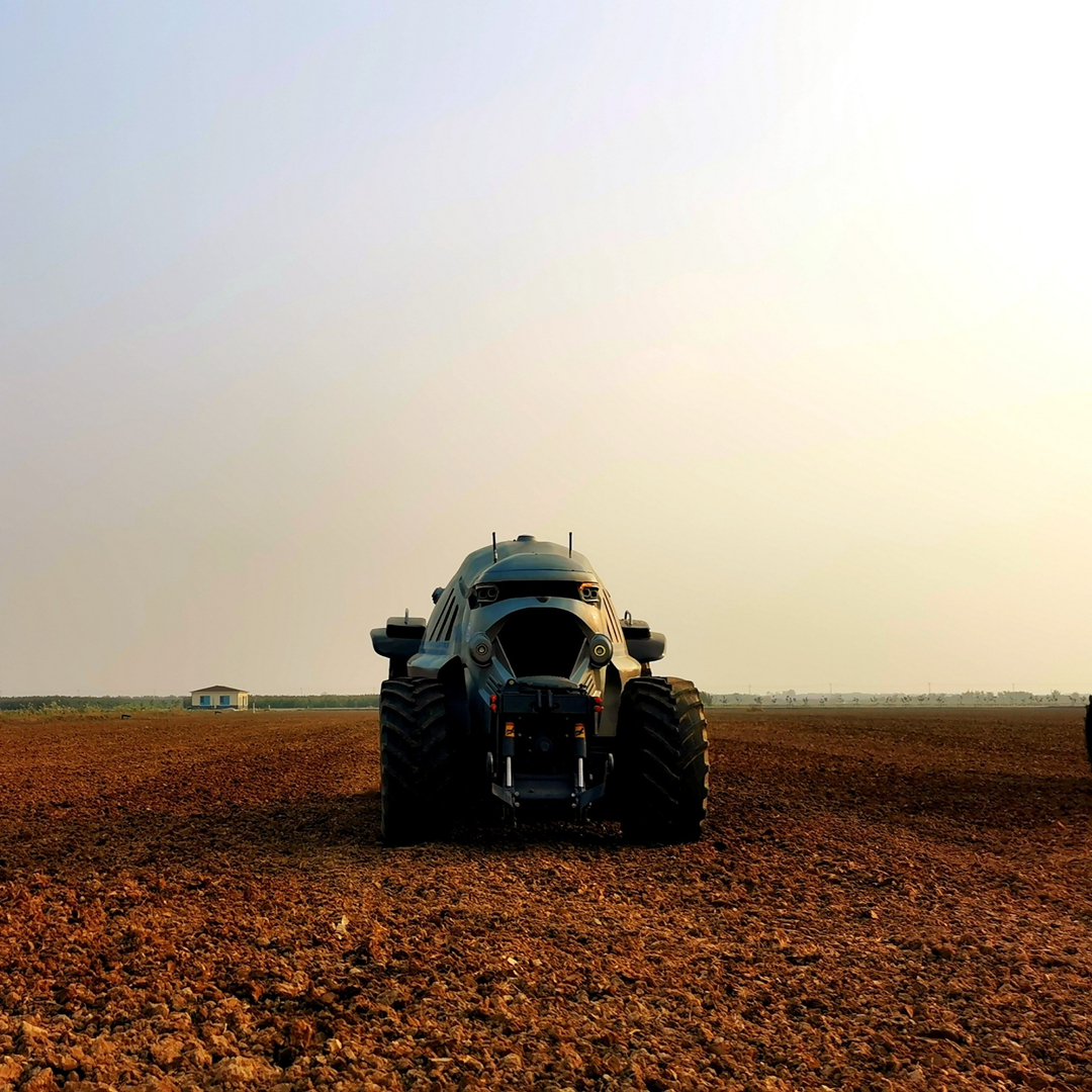 放眼麦田,空无一人,唯有四辆农机来往穿梭。定睛一瞧,这农机造型炫酷,形似“变形金刚”。神奇的是,车上并无农机手,是如何运转的呢?