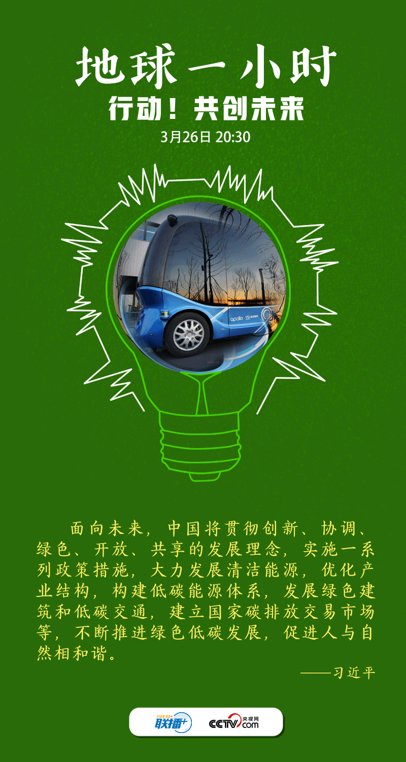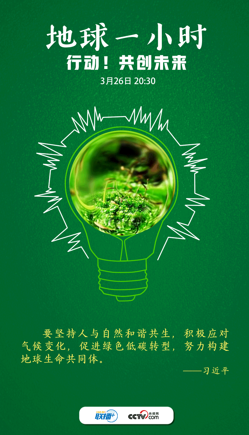 保护地球不止一小时。央视网《联播+》梳理总书记相关论述,邀您一起“节”尽所“能”,争当地球家园呵护者、绿色生活理念传播者、低碳生活方式践行者,为建设绿色新家园多作贡献。