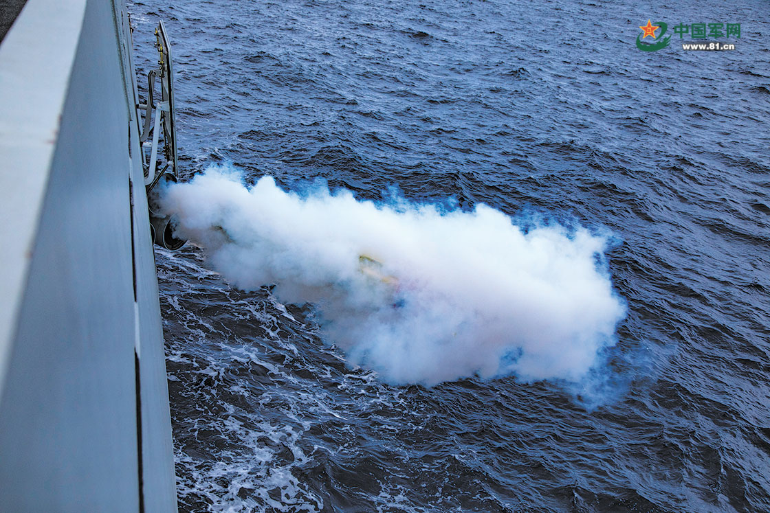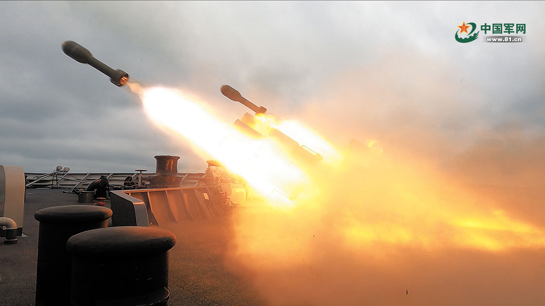 对目标海域发射火箭深弹进行打击。