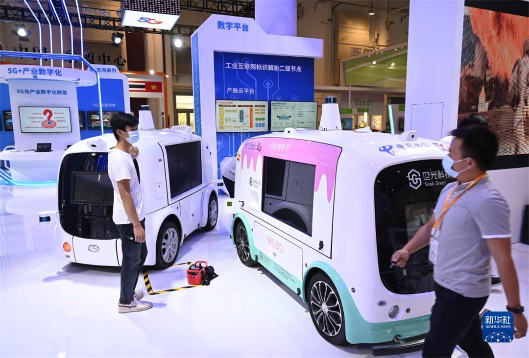 中国制造的智能汽车模型在厦门举行的2021金砖国家新工业革命展上展出(2021年9月9日摄)。新华社记者 林善传 摄