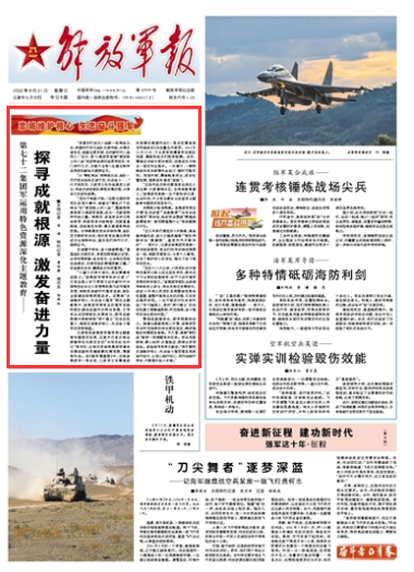 赞颂成就强信念,探寻根源添动力。随着主题教育深入开展,该集团军官兵听党指挥的信念更加坚定,精武强能的热情更加高涨。不久前,某旅“钢四连”接受一项课题攻关任务。官兵克服困难、潜心钻研、反复验证,探索出多项战法。该连指导员李文新说:“我们要把忠诚维护核心、矢志奋斗强军落实到具体行动中,以恒心践行初心、用行动践行使命,不断提升战斗本领。”