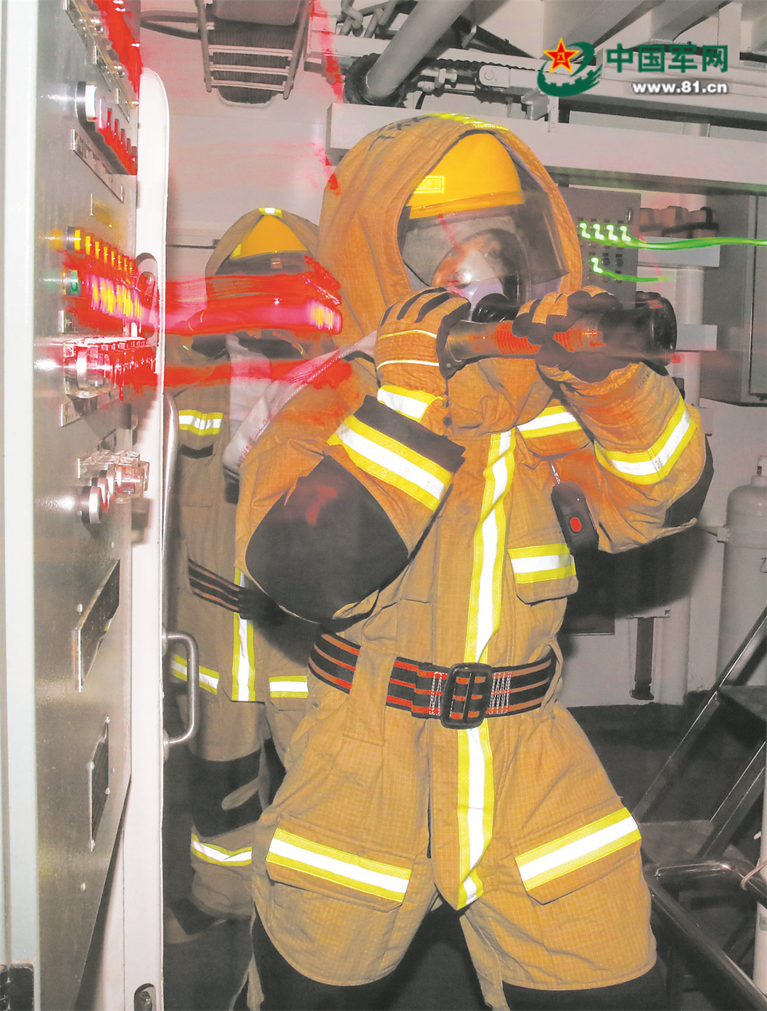 “敌情”不断,险情迭出。在完成对潜搜索与攻击演练后,编队某舰突遭“敌”袭击失去动力,其他舰艇立即展开救援,实施舰艇拖带。演练中,面对人员落水、舰艇进水、舱室起火等险情,参训各舰快速反应,紧张投入营救落水人员、堵漏排水和损管灭火等行动。