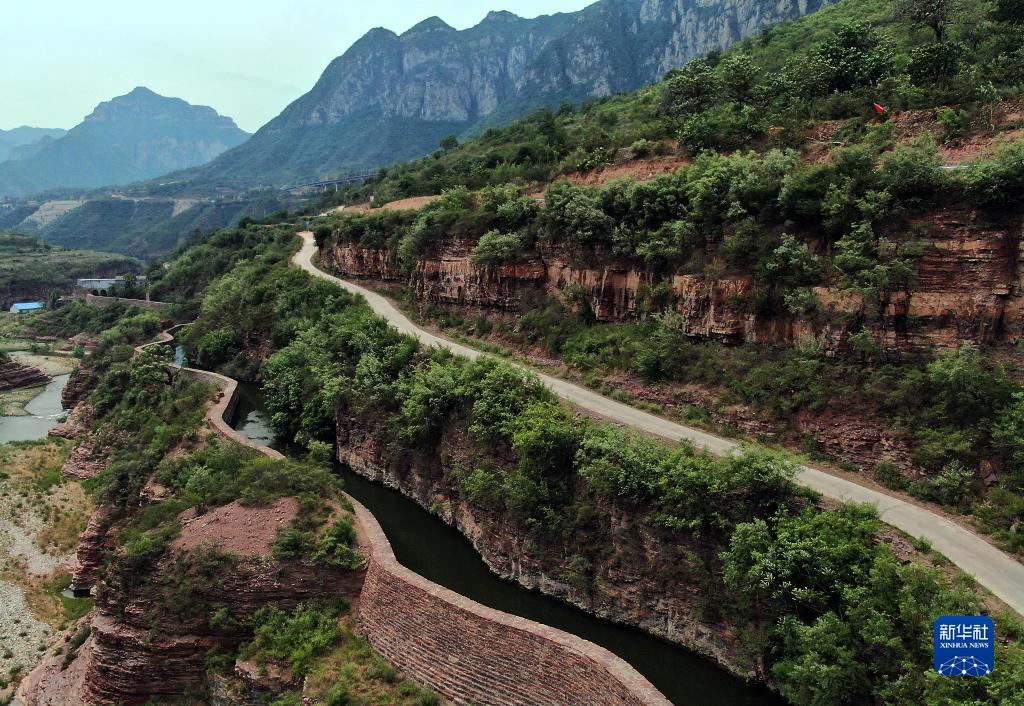 这是蜿蜒穿行于太行山间的红旗渠总干渠(2019年7月4日摄,无人机照片)。新华社记者 李安 摄