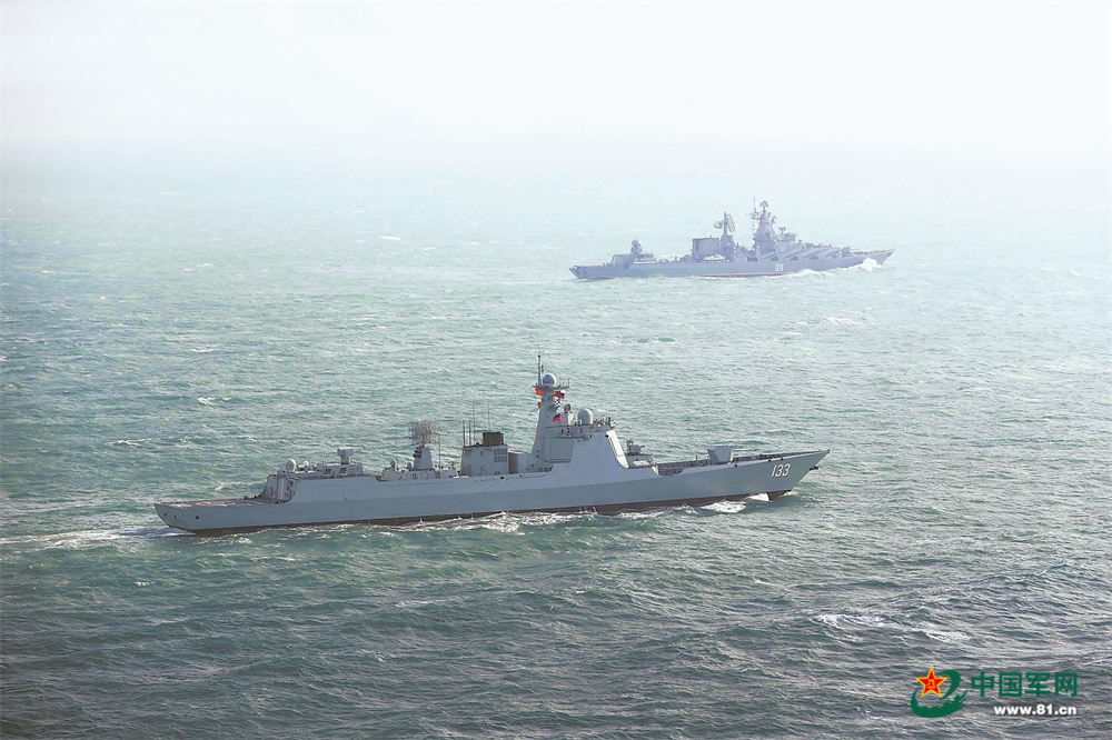 “我宣布,中俄‘海上联合-2022’联合军事演习现在开始!”随着双方执行导演一声令下,海上参演舰艇长鸣汽笛1分钟,分别向左向右分航,高速向演习预定海域机动。期间,双方还结合航渡组织了编队运动、通信操演和直升机警戒等科目演练。