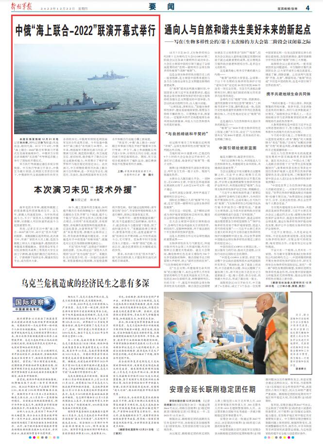 解放军报东海某海域12月21日电 记者孙兴维、特约记者孙飞报道:风高浪急,砺剑天海。21日下午4时,中俄“海上联合-2022”联合军事演习开幕式在东海某海域举行。中俄双方分别在济南舰和“瓦良格”号导弹巡洋舰上举行了简短的开幕仪式。
