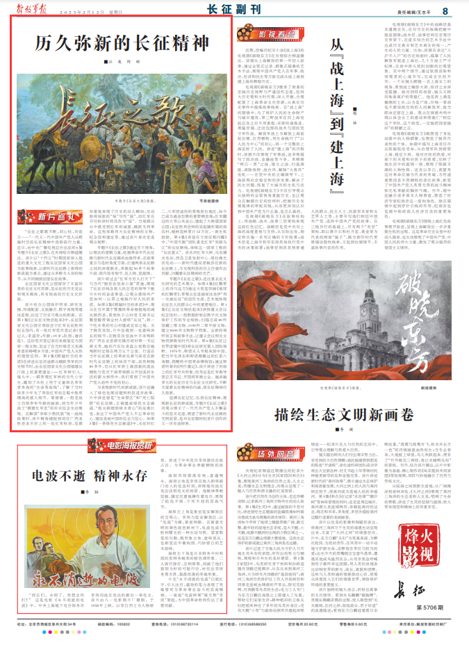 专题片《长征之歌》,还注重长征文化研究的艺术展示。如第5集《红飘带上的诗与远方》通过大型连环画《地球的红飘带》,带观众走进画家沈尧伊“用一生画长征”的创作生涯,艺术地体现长征在人民群众心中的重要地位。第1集《让长征文物活起来》讲到遵义会议纪念馆时,一组数据折射出数字化文物保护工作的专业细致:扫描完成80件馆藏三维文物、1100件二维平面文物,建立8600页文物数字档案。全新的视听语言和叙事手法,让遵义会议相关文物资源焕发时代风采。第6集《长征让世界读懂中国》将长征研究置入国际视野。1975年,斯诺夫人专程来到中国,把当年毛泽东和斯诺都戴过的红星八角帽,捐赠给中国革命博物馆;通过斯诺所著的《西行漫记》,该片讲述了封面上的红军号兵形象,经考证是红军教导营总支书记、开国将军谢立全。越来越多元的长征历史与长征文化研究,不断丰富着长征精神的内涵,使长征精神历久弥新。