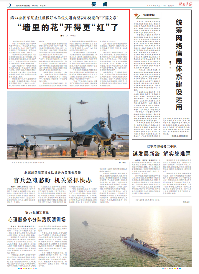 第74集团军某旅注重做好本单位先进典型表彰奖励的“下篇文章”——