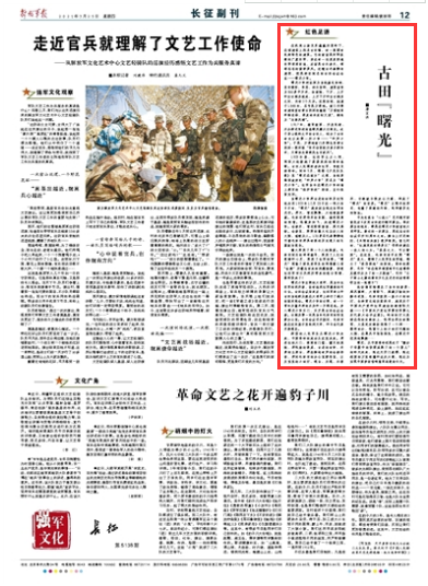 我仿佛依稀看见了当年的场景:寒风凛冽,大雪纷飞,寒凝万物的如磐冬夜里,毛泽东拨亮一盏小小的油灯,全神贯注地伏案疾书,起草关于中国共产党和红军建设的纲领性文献——《中国共产党红军第四军第九次代表大会决议案》。松油的灯火星掉在他的灰棉袄上,他却全然没有察觉,火星把灰棉袄烧焦了一个洞……黎明时分,他窗口上的小油灯闪耀的火焰,在晨风中轻轻摇曳,在曙光中优美地飘舞……
