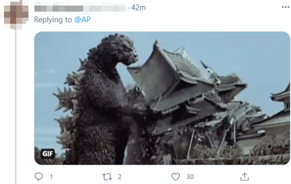 有网友联系到动漫怪兽形象“哥斯拉摧毁地球”的画面,讽刺说,“日本正在实现哥斯拉预言”。