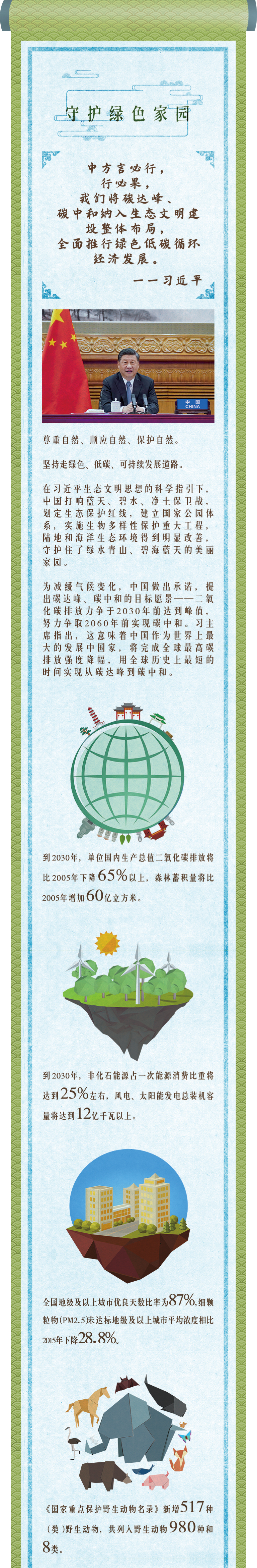 呵护蓝天碧海,着墨绿水青山,点染多彩生态——在习近平生态文明思想的指引下,中国正同世界一起,描绘一幅面向未来的绿色长卷。