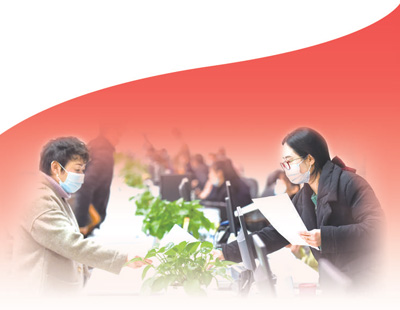 2021年2月18日,在湖北省荆州市政务服务中心,工作人员在为群众办理事项。黄志刚摄(影像中国)