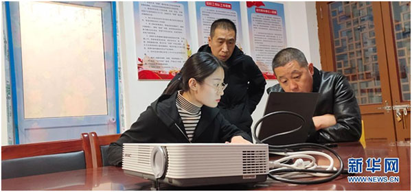 △ 2019年8月2日,父亲郭建平不幸牺牲在了扶贫工作第一线,年仅51岁。父亲离世仅十天,郭子涵擦干眼泪,毅然向组织提出申请,成为山西省晋城市陵川县附城镇台北村第一书记,踏着父亲的足迹完成其未完成的事业。图为郭子涵(左)与村干部商量油松种植产业事宜(2020年11月摄)。 新华社发