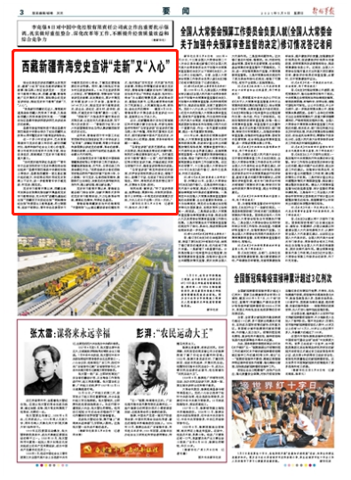 结合自身经历讲述西藏民主改革历史、邀请“小红军”在红色地标讲解红军故事、骑马深入牧区宣讲党史……党史学习教育开展以来,西藏、新疆、青海等地广泛开展形式多样、紧贴群众的党史宣讲活动,推动党史学习教育“走新”又“入心”。