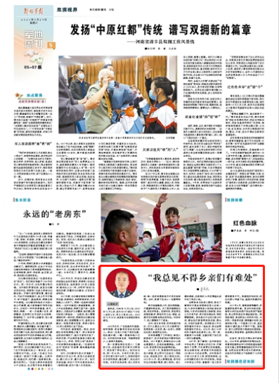 2018年5月,我接到村民电话说老人病重,我立即与几位战友一同赶过去,因送医及时,老人转危为安。2019年10月,老人病情加重,我守在床边为他端水喂药、悉心照料。老人最终病故,这段相识16年的情谊永远印在了我的心底。